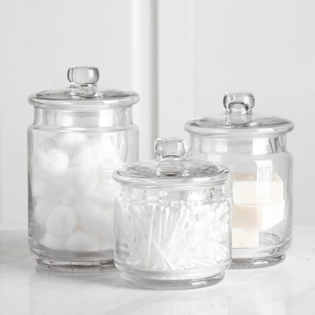 Tidy up your bathroom vanity! Glass jars have come back into their own now that plastic in all its forms is being avoided. These glass storage containers are perfect for storing flour, sugar, pastas, cookies and. Stylish and practical, the classical cotton bud storage jar with its elegant cream and black french worded detail will help to keep your swabs safely stored and in one place while adding a chic look to your bathroom. That's especially true when it comes to bathroom clutter.